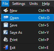 - The basic operations include New (create a new project), Open (open an existing project), Save (save the current project), Save As (save project under a new name), Print (print a report or a log), and Exit (close the program).
