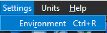 Help General → Settings Settings The Settings menu currently opens a dialog for configuring environment parameters, such as the reference pressure. Back to main menu