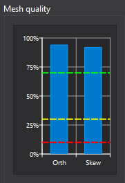 - Mesh quality is evaluated using orthogonality and skewness. Values close to 100% represent an ideal mesh.
