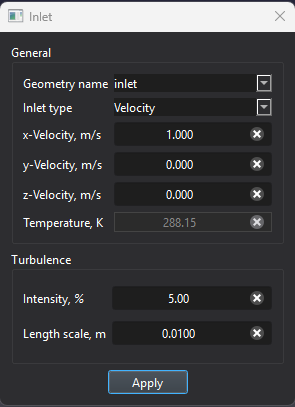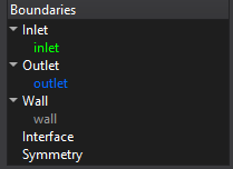 - To edit a boundary, select it from its pre-defined category (for example, Velocity inlet)