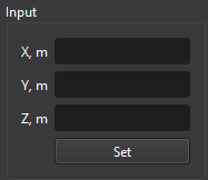 Help Solution → Input panel Input The Input panel is used to enter the coordinates of a monitoring point. Tips Empty coordinate fields are interpreted as zero. Back to main menu
